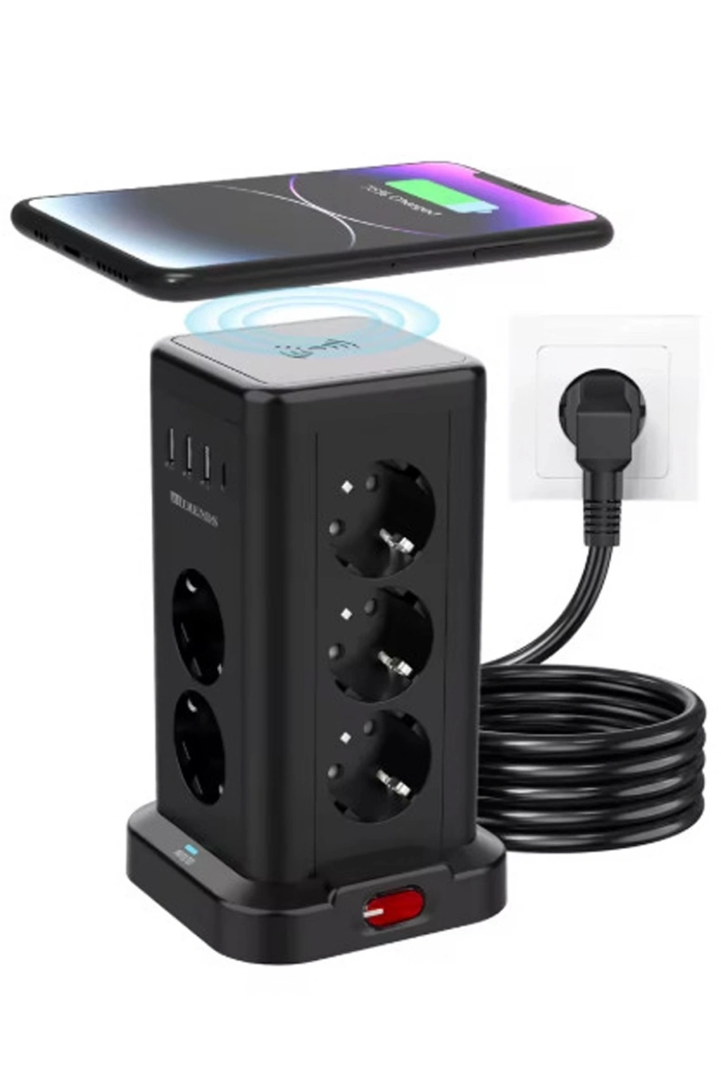 Wp711 Akım Korumalı Priz Kablosuz Şarj İstasyonu 11x Soket 3x Usb 1xtype-c Kablolu Grup Priz
