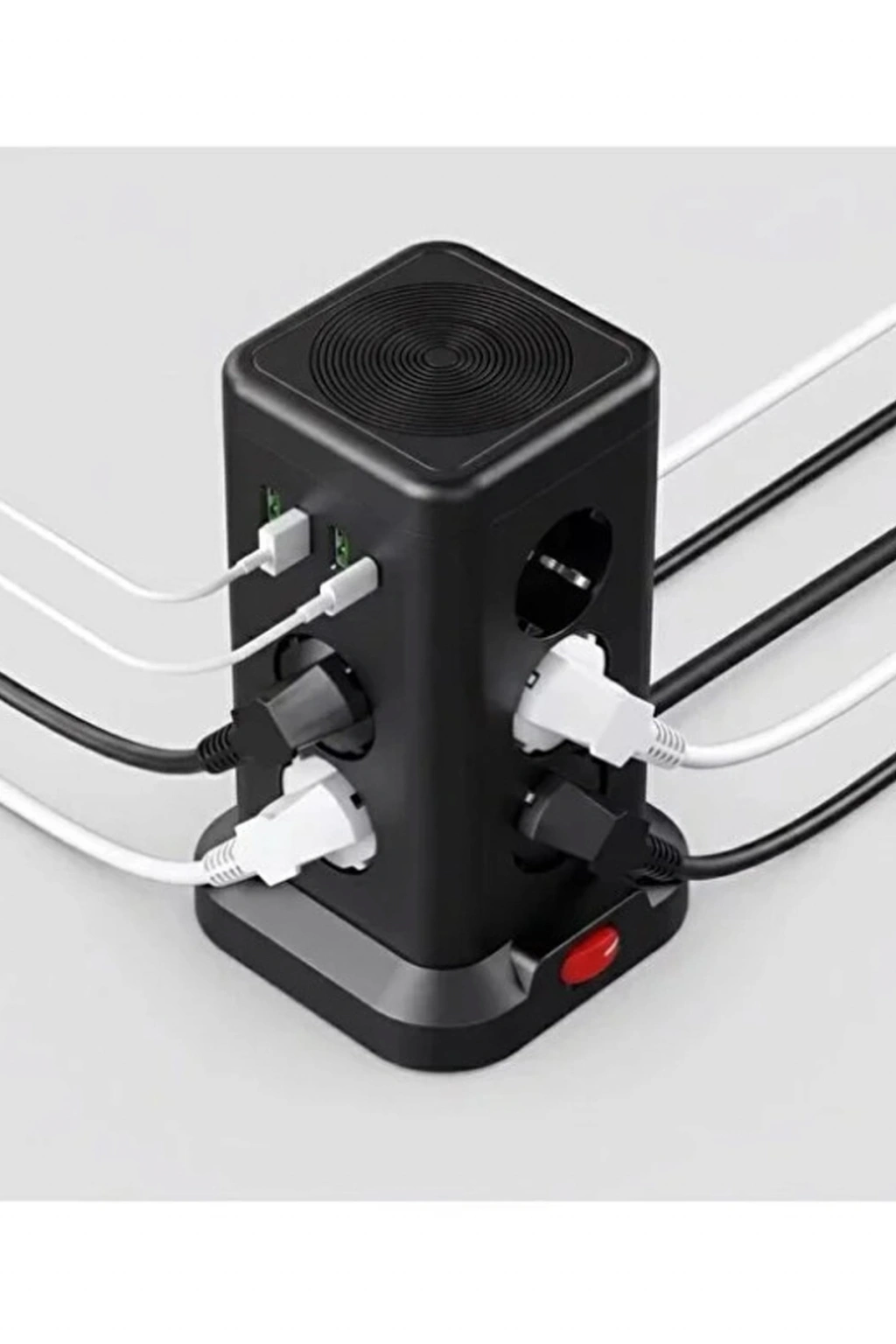 Akım Korumalı Anahtarlı Priz - 3x Priz - 2x Usb - 2x Type-c - 2 Mt Kablo Hızlı Şarj Özellikli Siyah