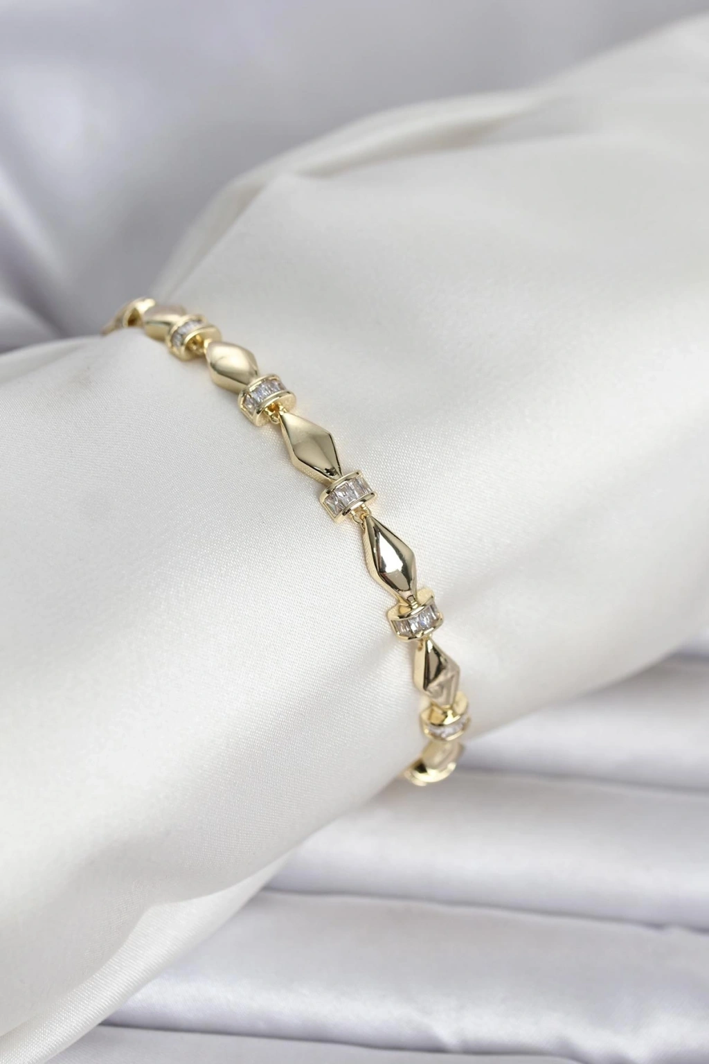 Pirinç Gümüş Renk Petek Model Zirkon Taşlı Kadın Bileklik