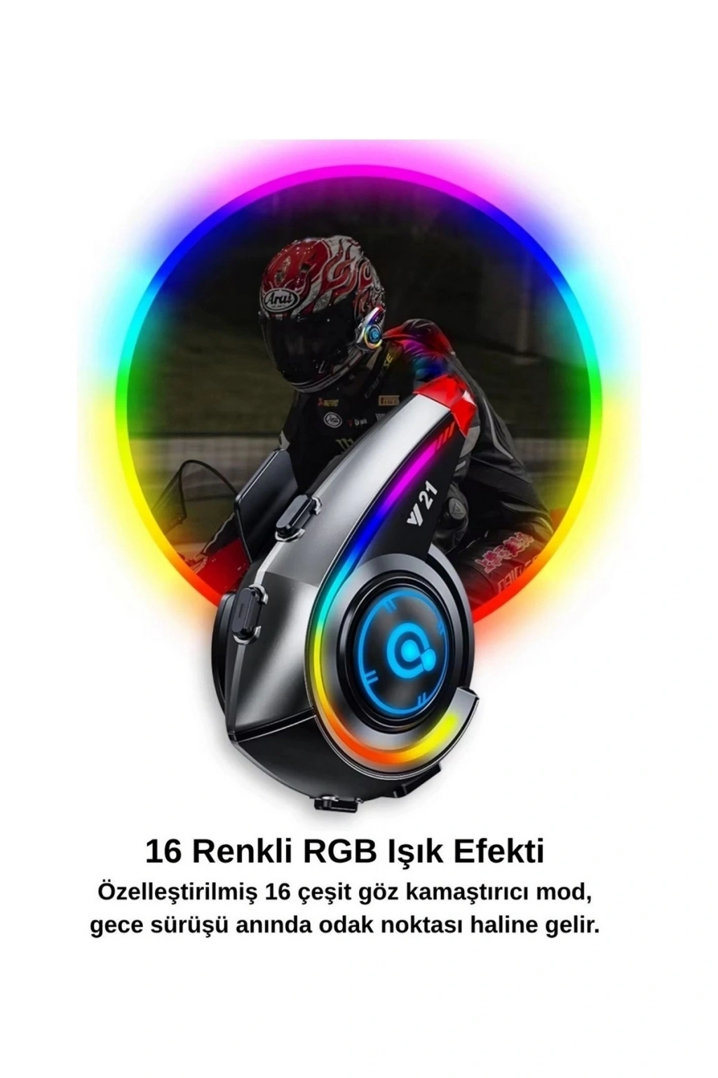 Y21 Rgb Işık Efektli Intercom Bluetooth Motosiklet Kask Kulaklığı Intercom Kulaklık