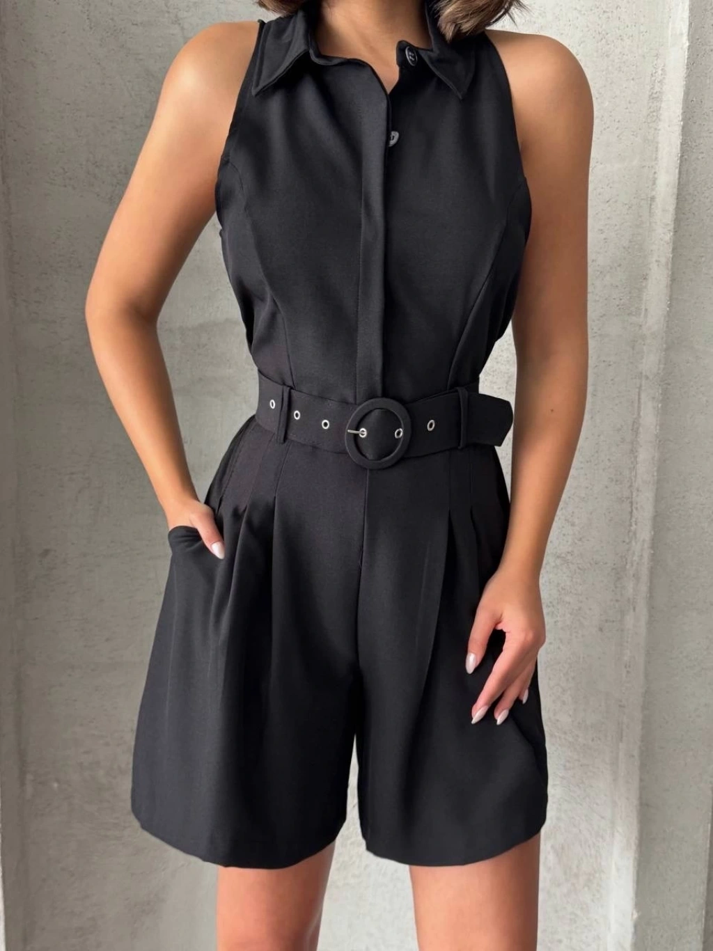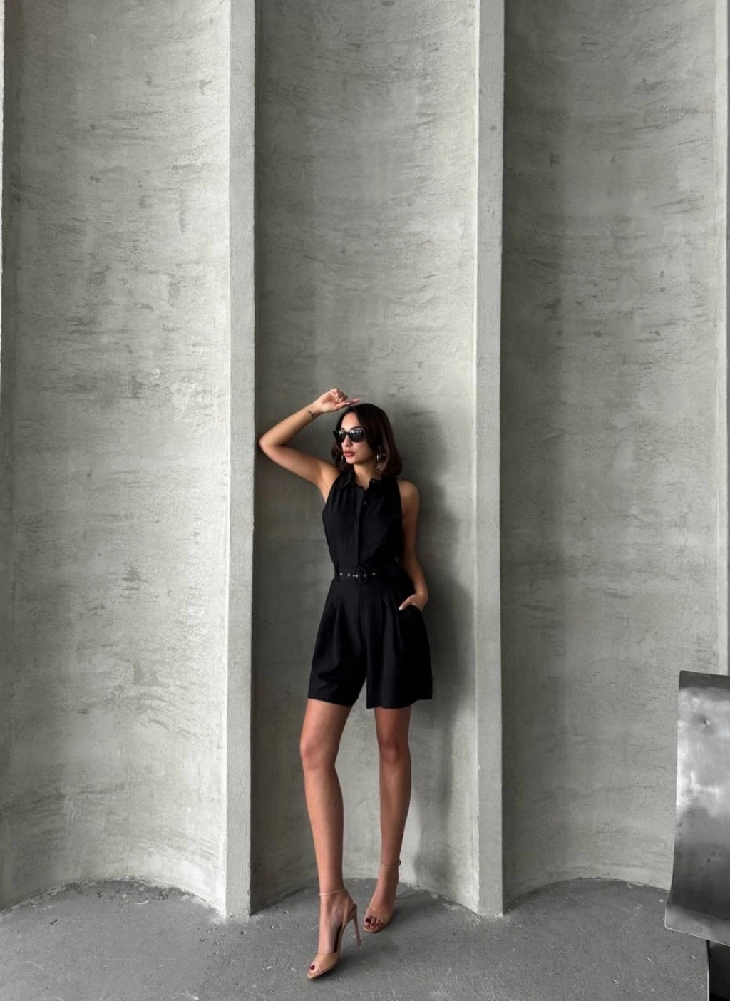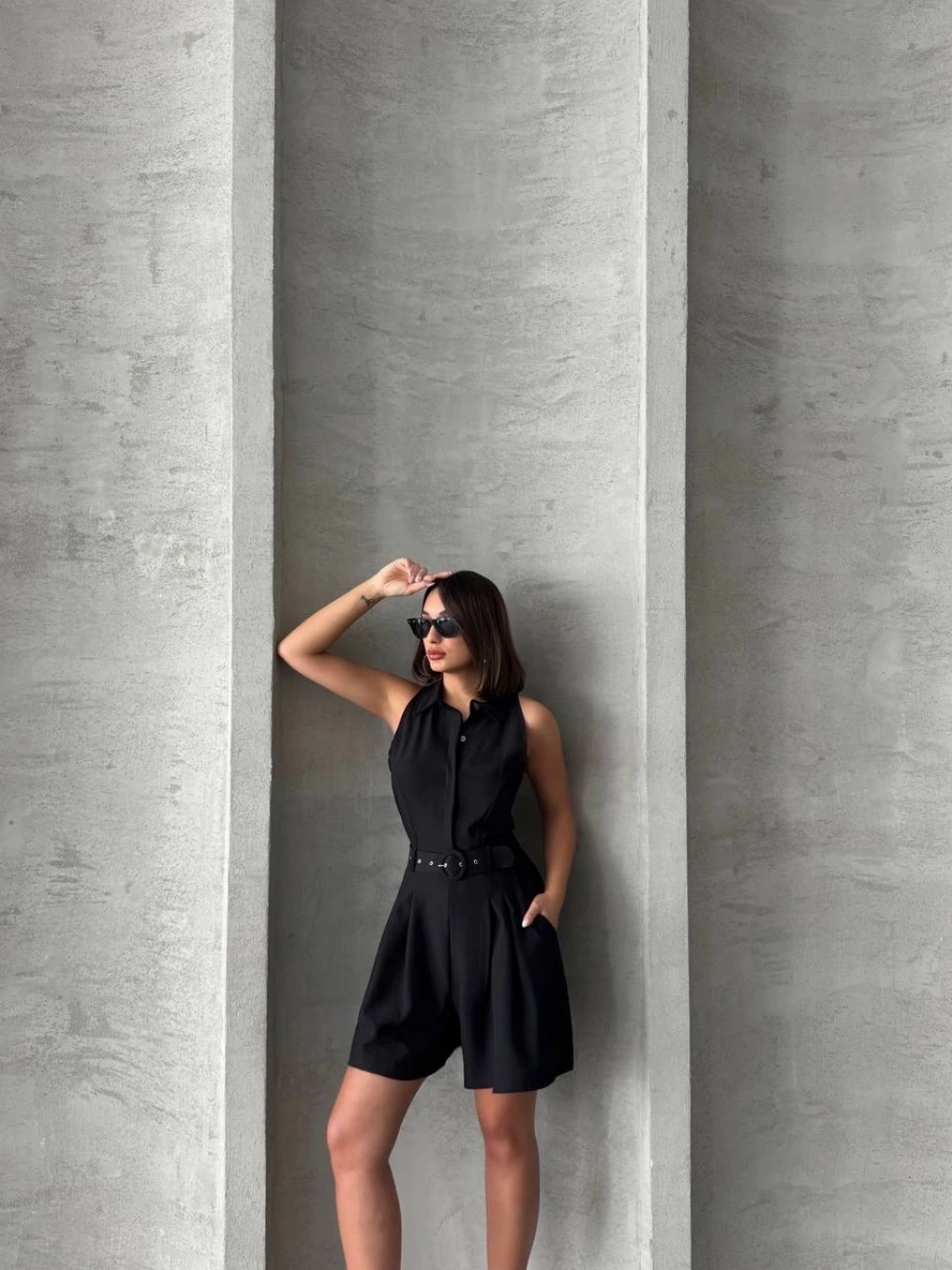 Askılı ch kumaş düğmeli elbise siyahbeyaz h265007