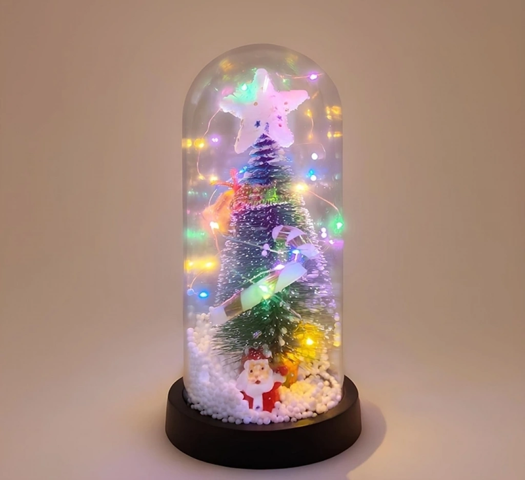 Yılbaşı Temalı Işıklı Dekoratif Cam Fanus - Model 10