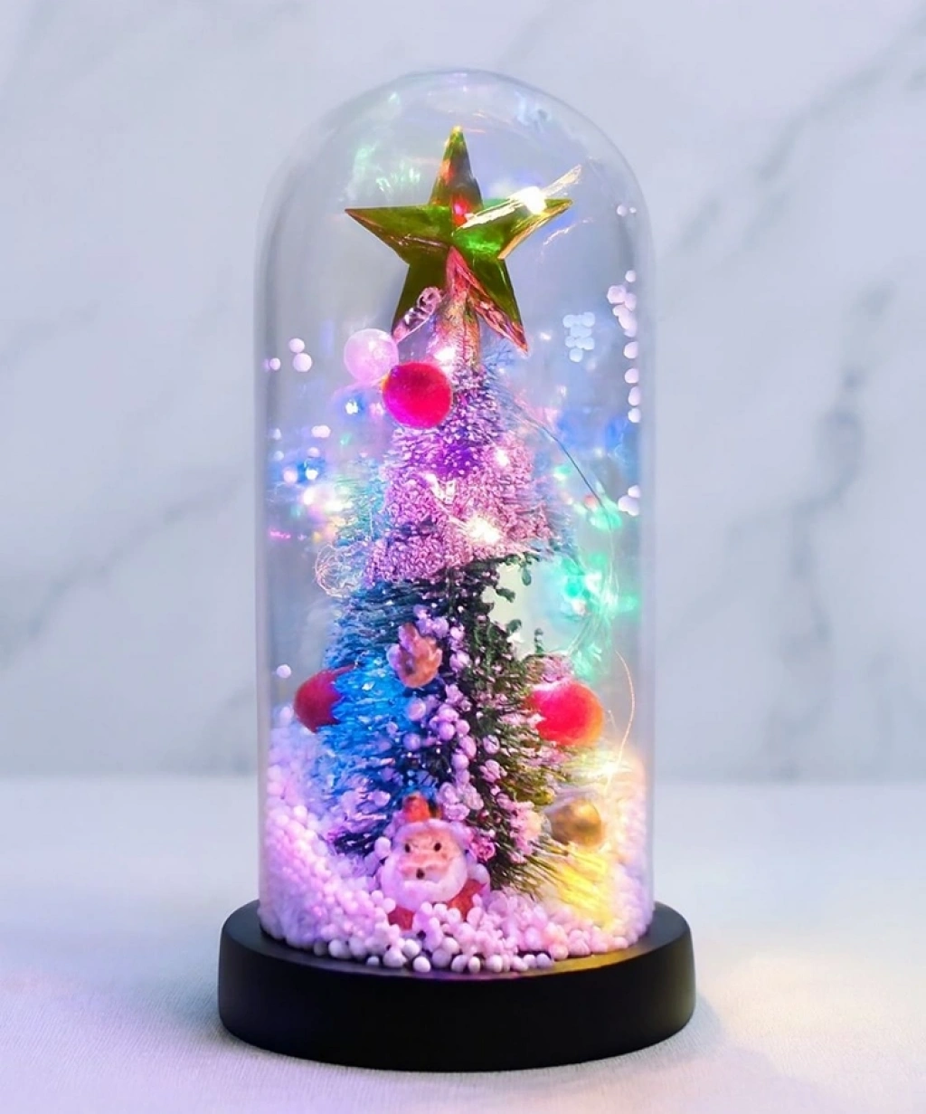 Yılbaşı Temalı Işıklı Dekoratif Cam Fanus - Model 10