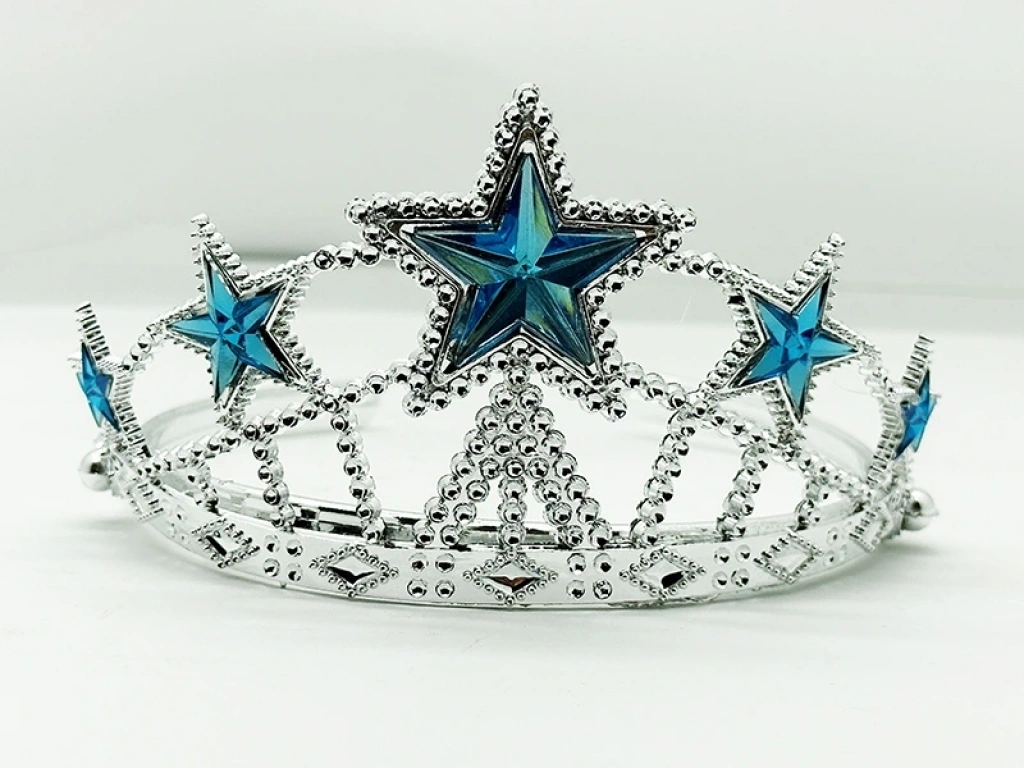 Yıldız Şekilli Elsa Prenses Kraliçe Tacı Mavi Renk Çocuk Boy 5x17 cm (5047)
