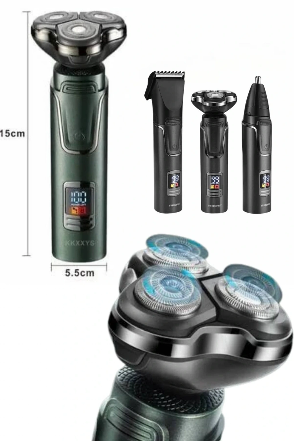 Yüksek Performanslı 3 Başlıklı Profesyonel Şarjlı Islak ve Kuru Kullanıma Uygun