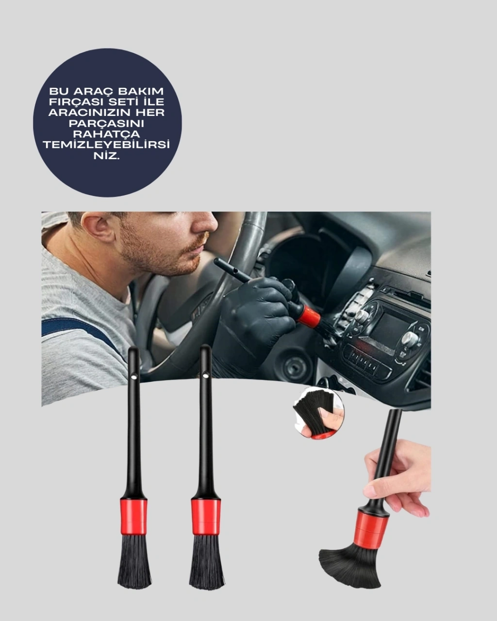 5 Boy Fırçalı Araba Temizlik Seti-Derin Temizlik Sağlayan Yumuşak Fırçalar