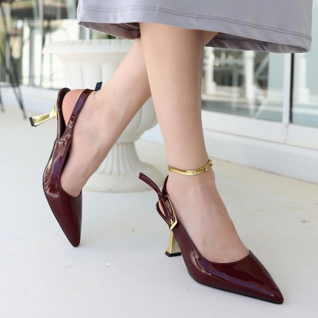 Zalin Bordo Rugan Topuklu Ayakkabı