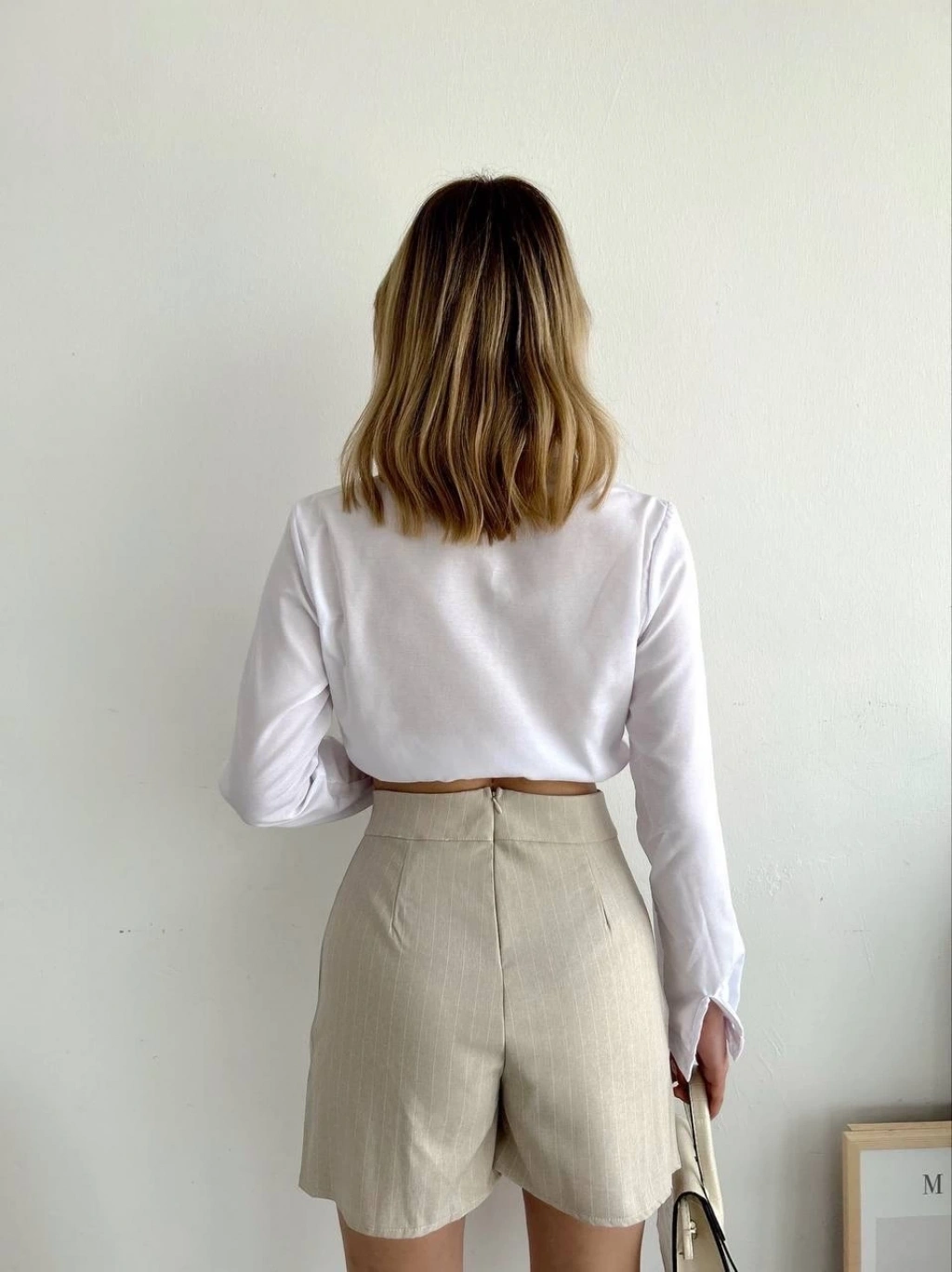 Kemerli deri şort krem h241003